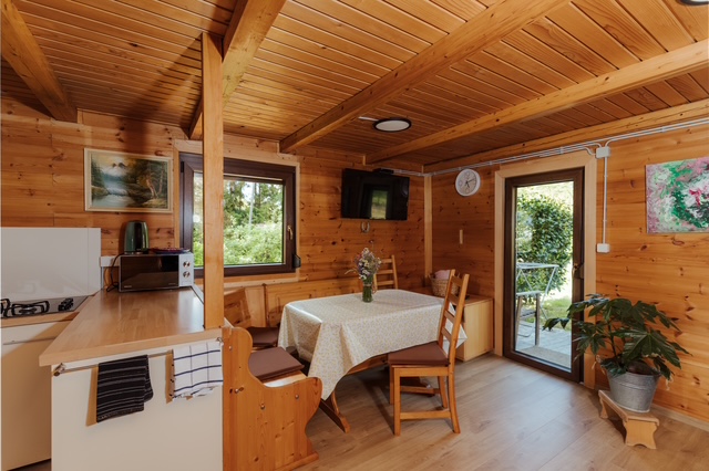 Lesena hiška za oddajo: poleg sob, ki jih oddajamo našim gostom, smo v korona času postali bogatejši za krasno LESENO HIŠKO v naši neposredni bližini. Hiška je na voljo za oddajo za 4 osebe, s kuhinjo, jedilnico, kopalnico, dvema spalnicami in dvema terasama.